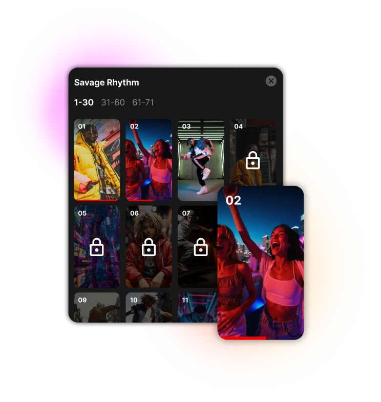 - Interactive thumbnails: preview, unlock, or play instantly